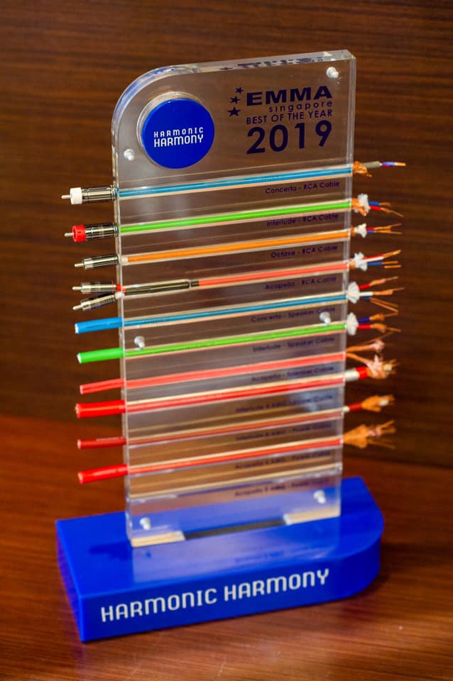 The Harmonic Harmony Concerto Series RCA interconnects received formal recognition at EMMA Europe 2019, winning a Best Performance award — cementing the brand’s status as a serious high-end signal solution within global competition circuits.
